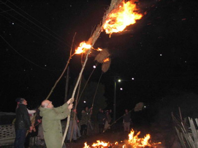 Овај обичај датира још из прадавних времена, из периода старе српске многобожачке религије. На Покладе пред Васкршњи пост (Беле Покладе), кад падне први мрак, сакупи се сав народ из једног дела села на некој од већих раскрсница, носећи на дугачким моткама снопове сламе. У време настанка овог ритуала, слама је била увезана у облику лутке, али се временом тај детаљ изгубио. Зависно од величине села и устаљених навика, зборно место може бити једно за цело село или се, пак, људи окупљају на више места. У Мириловцу се народ скупља чак на двадесетак места. Чим дођу двоје-троје са палалијама, оне се запале и подигну високо, готово вертикално. Како ко долази касније, он своју палалију пали прислањајући је на оне што већ горе. Обично се образује круг, како би све палалије биле једна уз другу и да запаљена слама са свих палалија пада на једно место. На том месту се додавањем још сламе, кукурузовине или грања, распирује већа ватра. Кад палалије догоре, мотке се одлажу у страну и почиње прескакање ватре. Док је ватра још велика, прескачу је само најхрабрији, а како се смањује – прескачу је сви. Кад се сасвим смањи, долази ред и на мању децу. У исто време, обичај налаже да се у охлађеном пепелу ватре нагараве руке и да се тим рукама гараве лица других, кришом, прилазећи им слеђа. Ово би био кратки опис дешавања, а у симболику, порекло, значење и смисао ових обичаја се, за сада, нећемо упуштати. Слични обичаји на Покладе очували су се и код других народа српског порекла и код свих словенских народа. У Русији се овај празник зове Масленица, и на тај дан спаљује се тзв. страшило Масленице, као симбол смене годишњих доба. Лазаревић Дејан