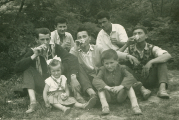доњи ред: Јела (ћерка Гоце Икиног) и Новица М. Миленковић (1952.) средњи ред: Гоца Икин, Живота Ј. Живковић и Боривоје Божиновић горњи ред: Бранко М. Лазаревић (1943.) и Милоје Р. Миленковић (1930.) -фото: 20.06.1960. |