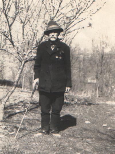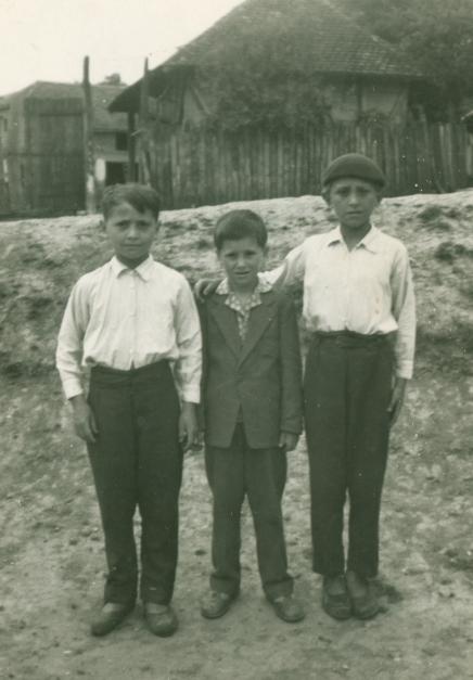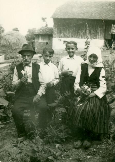 Радан Петровић у свом дворишту са унуцима Светиславом (1949.) и Томиславом (1947.) |