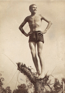 На купалишту „Код кривине“ - Зоран А. Савић (1953.), Јован Д. Савић (1941.) и Боривоје Божиновић (1942.). Тзв. вир ''на кривину'' налазио се на реци, у горњем току, пре одвајања реке на ''појазак'' /за воденицу/ и реку, негде код ''Пајићких градина'' код градине Милета Томиног. Вир је био у кривини и био је најдубљи на реци. На његоој обали постојала је врба са које се скакало у воду. Ту су се купале старије генерације током педесетих и шездесетих година. – фото: 1967. |