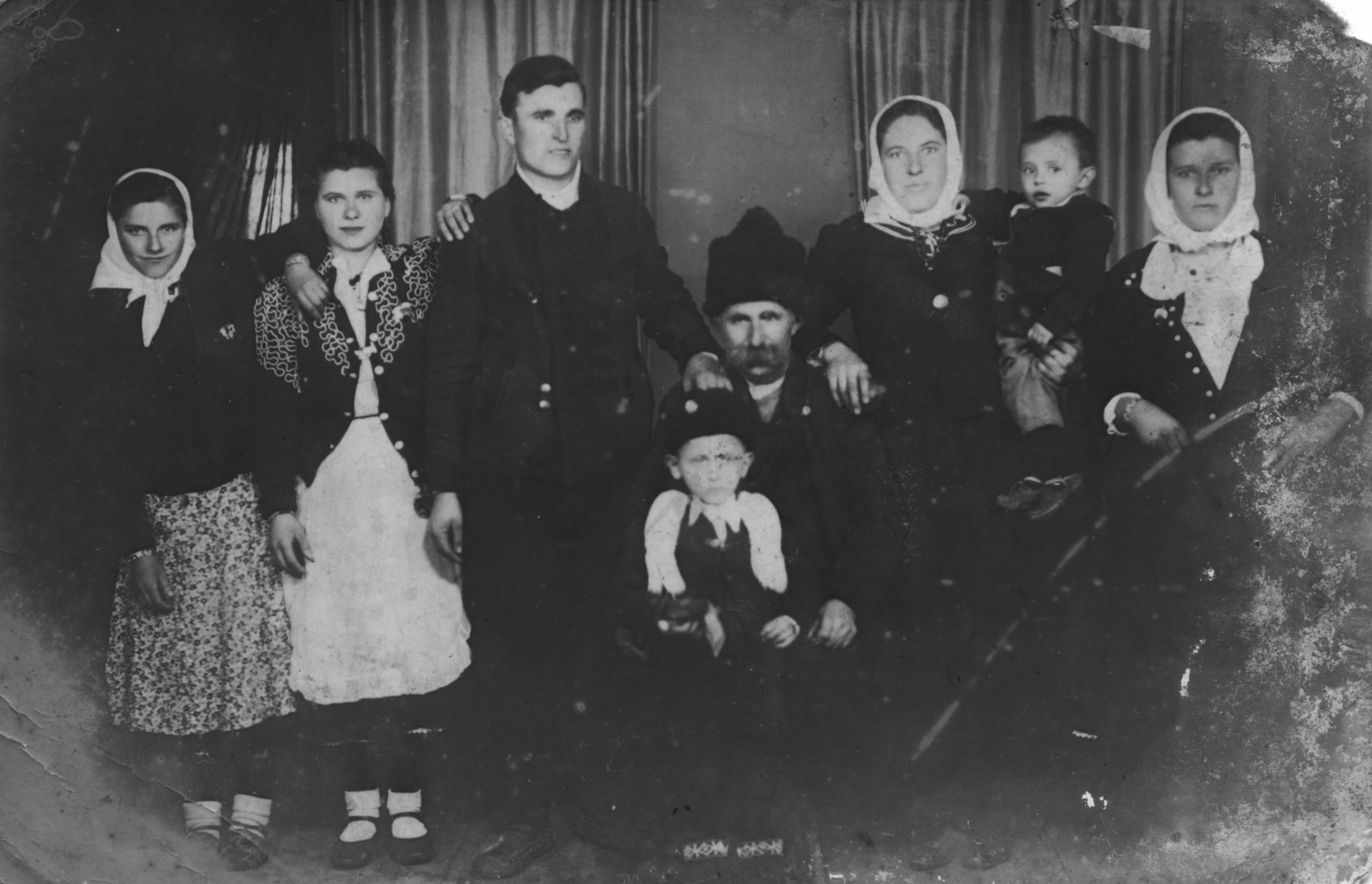 Породица Милована Илића: Милован (1882.) седи у средини са унуком Милијом (1938.), слева надесно - унука Зора (1929.), унука Вера (1927.), син Станојло (1917.), снаја Славка са сином Топлицом (1942.) у наручју и снаја Миленија. Милован их је одвео на сликање у Параћин, да би послао слику сину Милану, који је био у немачком ропству. |