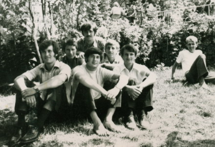 Мириловачки момци на сабору у Крежбинцу (фото: Гвозден Живковић, 1972.; апарат: СМЕНА 8) Раде Р. Илић (1953.), Иван А. Манојловић, Зоран А. Савић (1953.), Момчило Д. Лазаревић (1949.), Светислав М. Петровић (1949.), Милорад С. Лазаревић (1954.), Јовица Лазић, Томислав Атанацковић (1955.), Новица М. Миленковић (1952.) и Славољуб М. Пајић (1953.) |