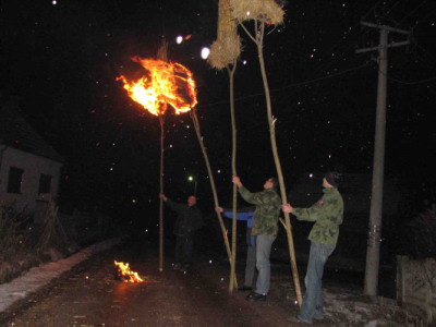 Овај обичај датира још из прадавних времена, из периода старе српске многобожачке религије. На Покладе пред Васкршњи пост (Беле Покладе), кад падне први мрак, сакупи се сав народ из једног дела села на некој од већих раскрсница, носећи на дугачким моткама снопове сламе. У време настанка овог ритуала, слама је била увезана у облику лутке, али се временом тај детаљ изгубио. Зависно од величине села и устаљених навика, зборно место може бити једно за цело село или се, пак, људи окупљају на више места. У Мириловцу се народ скупља чак на двадесетак места. Чим дођу двоје-троје са палалијама, оне се запале и подигну високо, готово вертикално. Како ко долази касније, он своју палалију пали прислањајући је на оне што већ горе. Обично се образује круг, како би све палалије биле једна уз другу и да запаљена слама са свих палалија пада на једно место. На том месту се додавањем још сламе, кукурузовине или грања, распирује већа ватра. Кад палалије догоре, мотке се одлажу у страну и почиње прескакање ватре. Док је ватра још велика, прескачу је само најхрабрији, а како се смањује – прескачу је сви. Кад се сасвим смањи, долази ред и на мању децу. У исто време, обичај налаже да се у охлађеном пепелу ватре нагараве руке и да се тим рукама гараве лица других, кришом, прилазећи им слеђа. Ово би био кратки опис дешавања, а у симболику, порекло, значење и смисао ових обичаја се, за сада, нећемо упуштати. Слични обичаји на Покладе очували су се и код других народа српског порекла и код свих словенских народа. У Русији се овај празник зове Масленица, и на тај дан спаљује се тзв. страшило Масленице, као симбол смене годишњих доба. Лазаревић Дејан