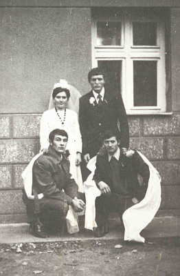 Сладица (1954.) и Милосав Милорада Јаћимовић (1947.) са сватовима (фото 1971.)