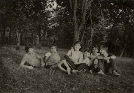 доњи ред: Јела (ћерка Гоце Икиног) и Новица М. Миленковић (1952.) средњи ред: Гоца Икин, Живота Ј. Живковић и Боривоје Божиновић горњи ред: Бранко М. Лазаревић (1943.) и Милоје Р. Миленковић (1930.) -фото: 20.06.1960. |