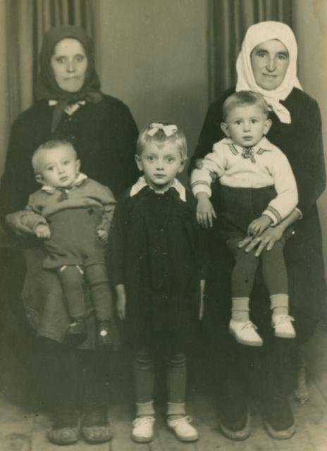 Јованка Манојловић (рођ. Павловић – 1901.) држи у крилу унука Ивана Манојловића (1950.), у средини – Љиљана Живковић (1947.), десно – Пола Живковић држи у крилу унука Љубишу Живковића (1948.) |