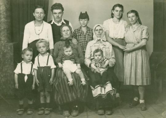 Породица Милована Илића: Милован (1882.) седи у средини са унуком Милијом (1938.), слева надесно - унука Зора (1929.), унука Вера (1927.), син Станојло (1917.), снаја Славка са сином Топлицом (1942.) у наручју и снаја Миленија. Милован их је одвео на сликање у Параћин, да би послао слику сину Милану, који је био у немачком ропству. |