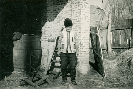 Радан Петровић у свом дворишту са унуцима Светиславом (1949.) и Томиславом (1947.) |